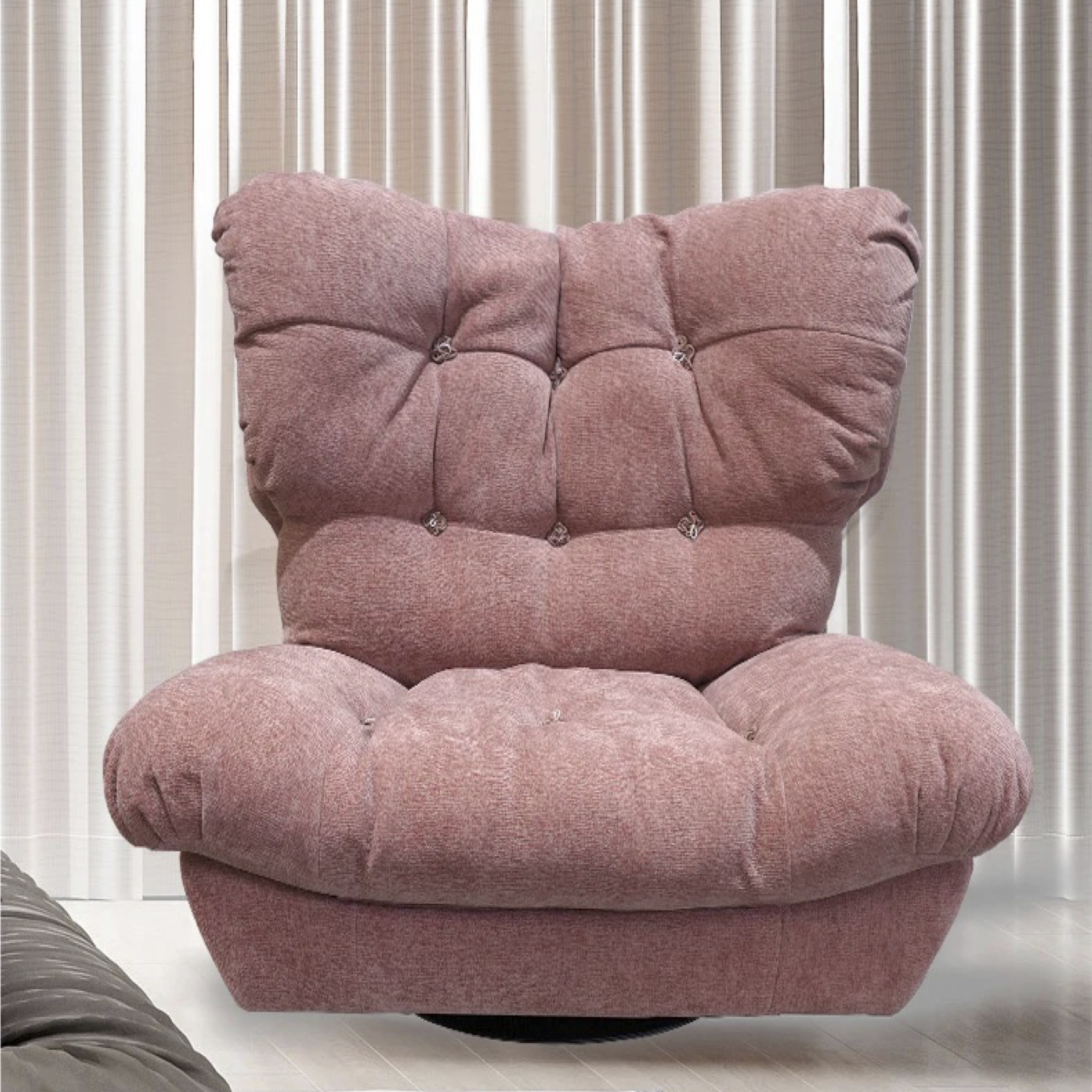 Embrace luxury and elegance with the Aria Cloud Occasional Chair. Inspired by the comfort of cloud, its plush velvet upholstery and swivel base highlight its sophisticated design, perfect for those seeking comfort and style in equal measure. Elevate your living space with this statement piece.