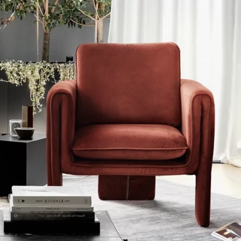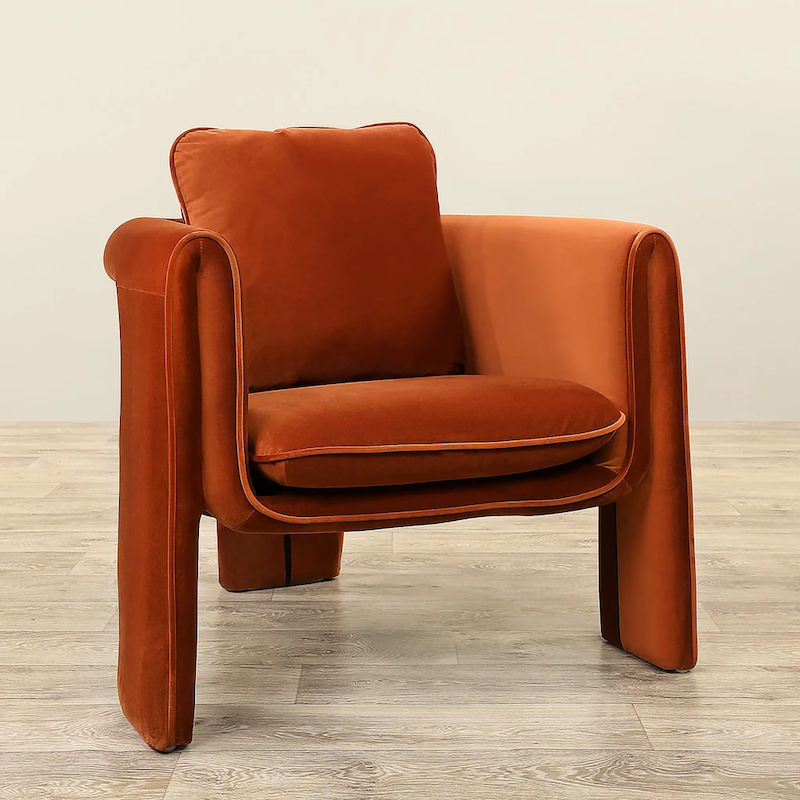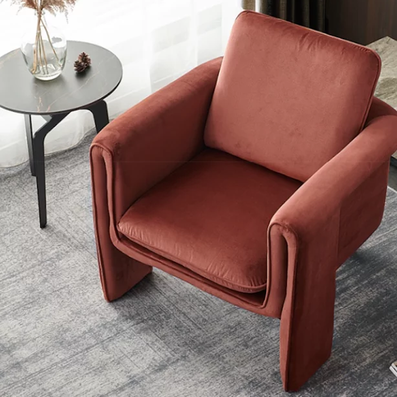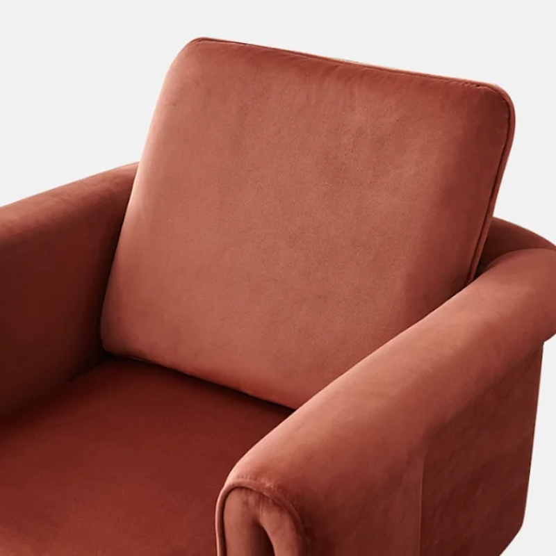 Add a touch of elegance with the Bianca Occasional Chair. Featuring a titanium gold-plated stainless steel base and luxurious velvet, it blends minimalistic design with luxurious comfort effortlessly.