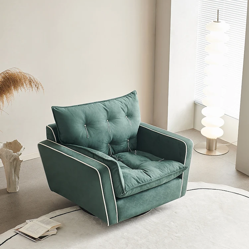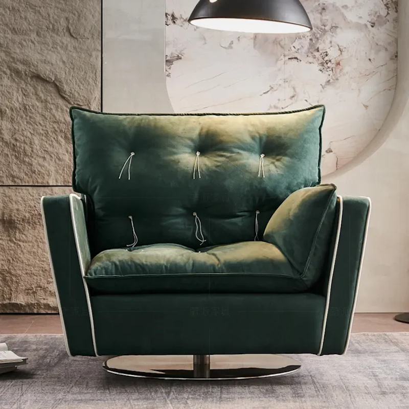 Experience sophistication with the Elegante Occasional Chair, a fusion of minimalist luxury and ergonomic design. Clad in premium velvet and equipped with a swivel mechanism, it offers unparalleled comfort and style for every occasion.
