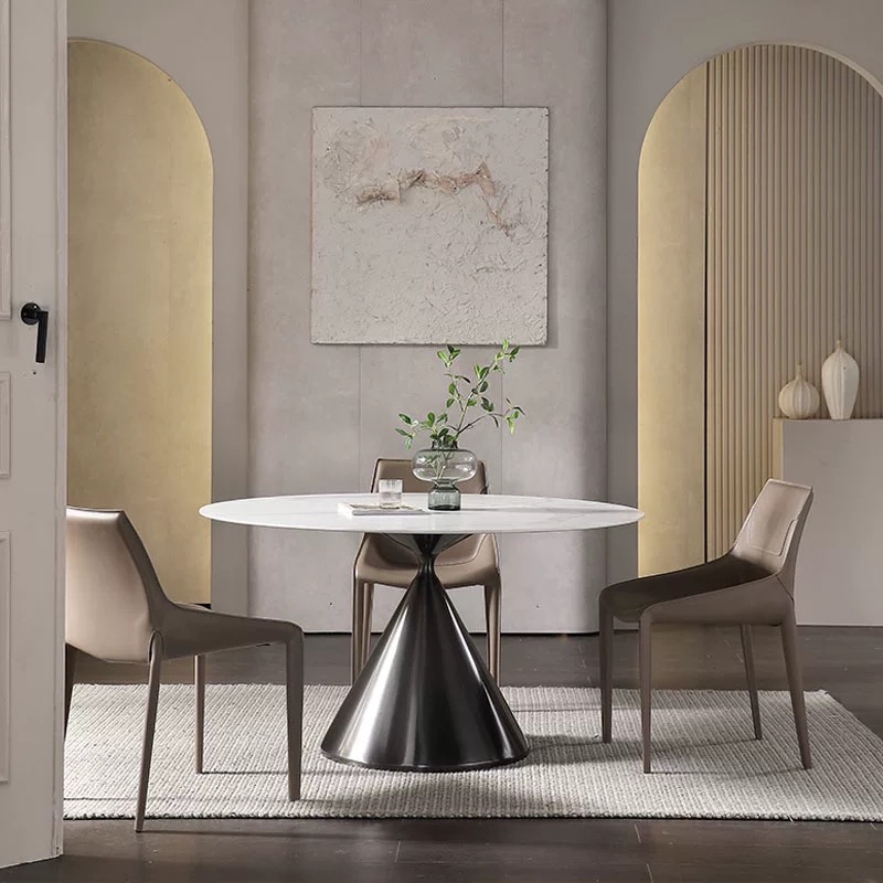 Elevate your dining space with the Ferrara Dining Table, where luxury meets modern design. The round sintered stone top offers stunning visual appeal, seamlessly blending with the stainless steel base. Its artistic design adds a unique character to any room. Ideal for those who value high-end craftsmanship and distinctive style. The Ferrara Dining Table is a testament to exceptional taste and elegance.