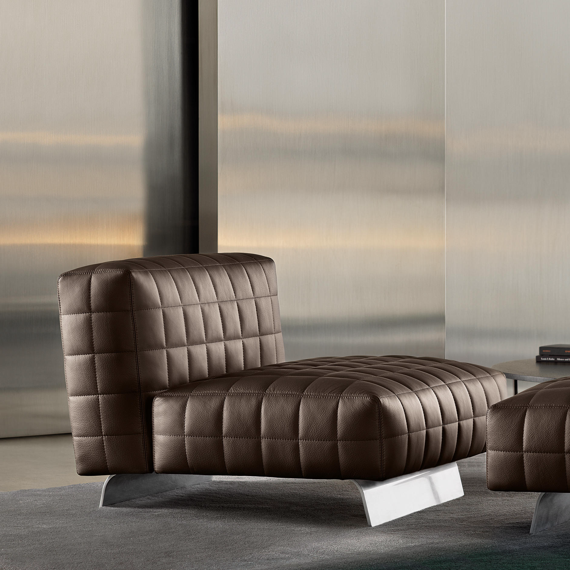 The Harrison Occasional Chair, inspired by the geometric allure of chocolate blocks, blends classic and vintage design with Italian high-end craftsmanship. Its minimalist, luxurious appeal is built on a solid wood frame, upholstered in premium leather, and supported by stainless steel legs. The chair’s exquisite stitching adds a touch of refinement, perfect for any elegant setting.
