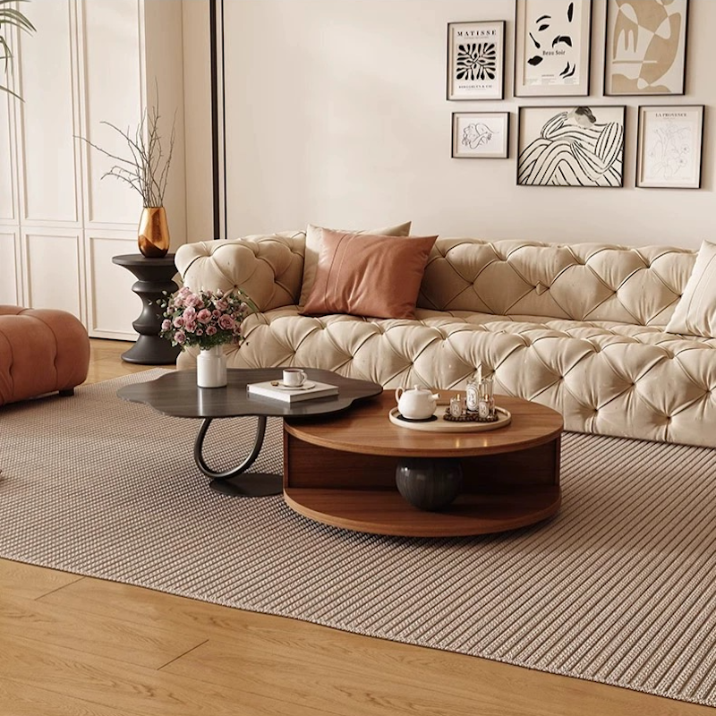 Elevate your living space with the Iris Coffee Table Set, featuring a striking combination of a carbon steel base and a wood grain surface. The sleek carbon steel base adds a touch of modern industrial flair, while the wood grain surface showcases a warm, natural, inviting feel. This dynamic duo effortlessly blends contemporary and rustic elements, making it a versatile addition to any decor. Perfect for pairing together or using separately, this set offers a harmonious balance of style and function.