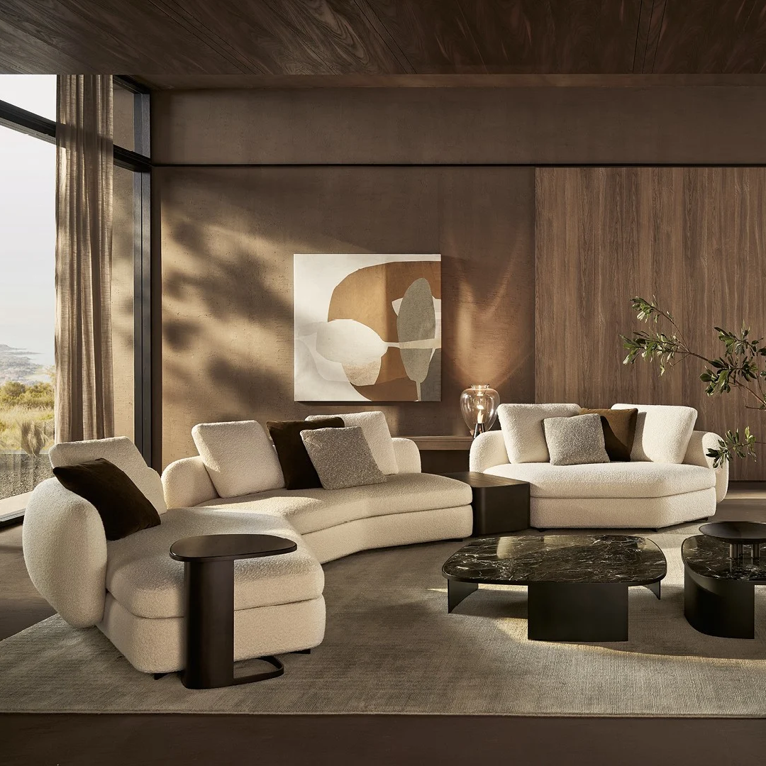 The Leopold Modular Sofa boasts luxurious curves that reflect the sophistication of Italian design. Its unique shape and elegant design make it a standout addition to any home. The feather-filled cushions provide a plush and comfortable seating experience. Built with an imported Russian larch wood frame, high-density foam, and upholstered in high-quality fabric or top-grain leather, this sofa combines opulence with durability.
