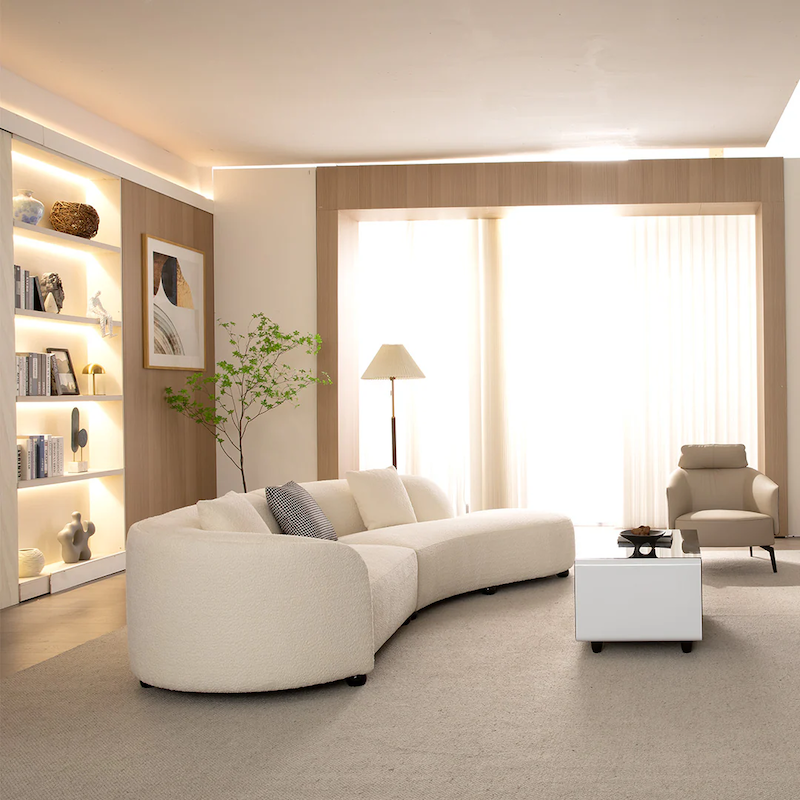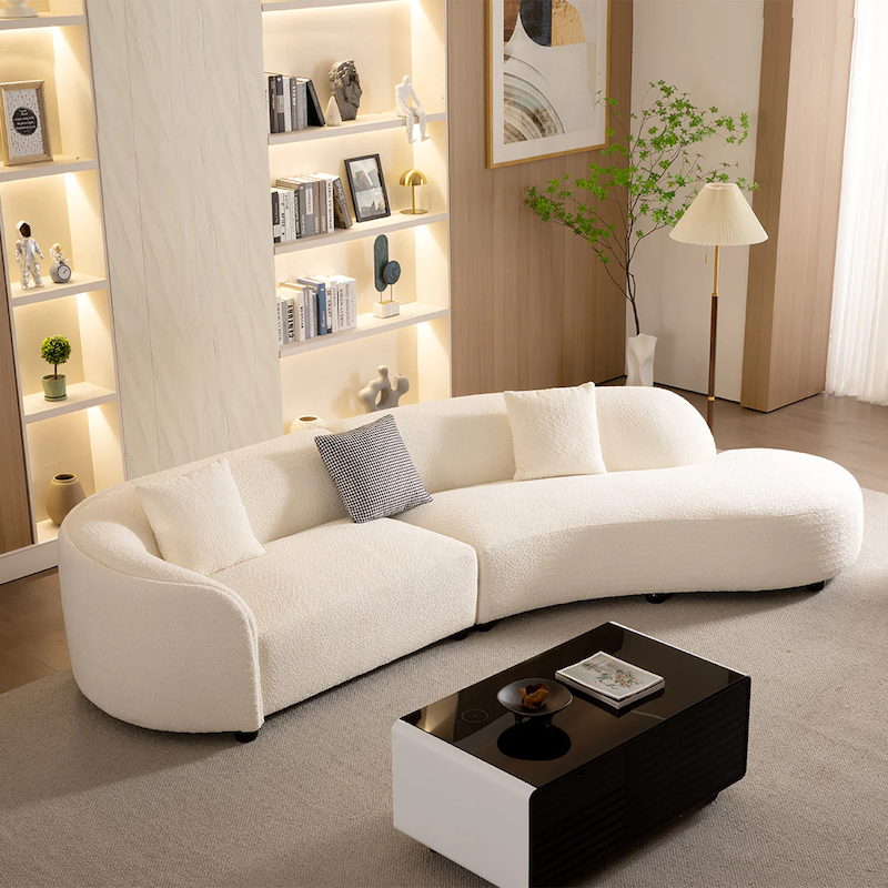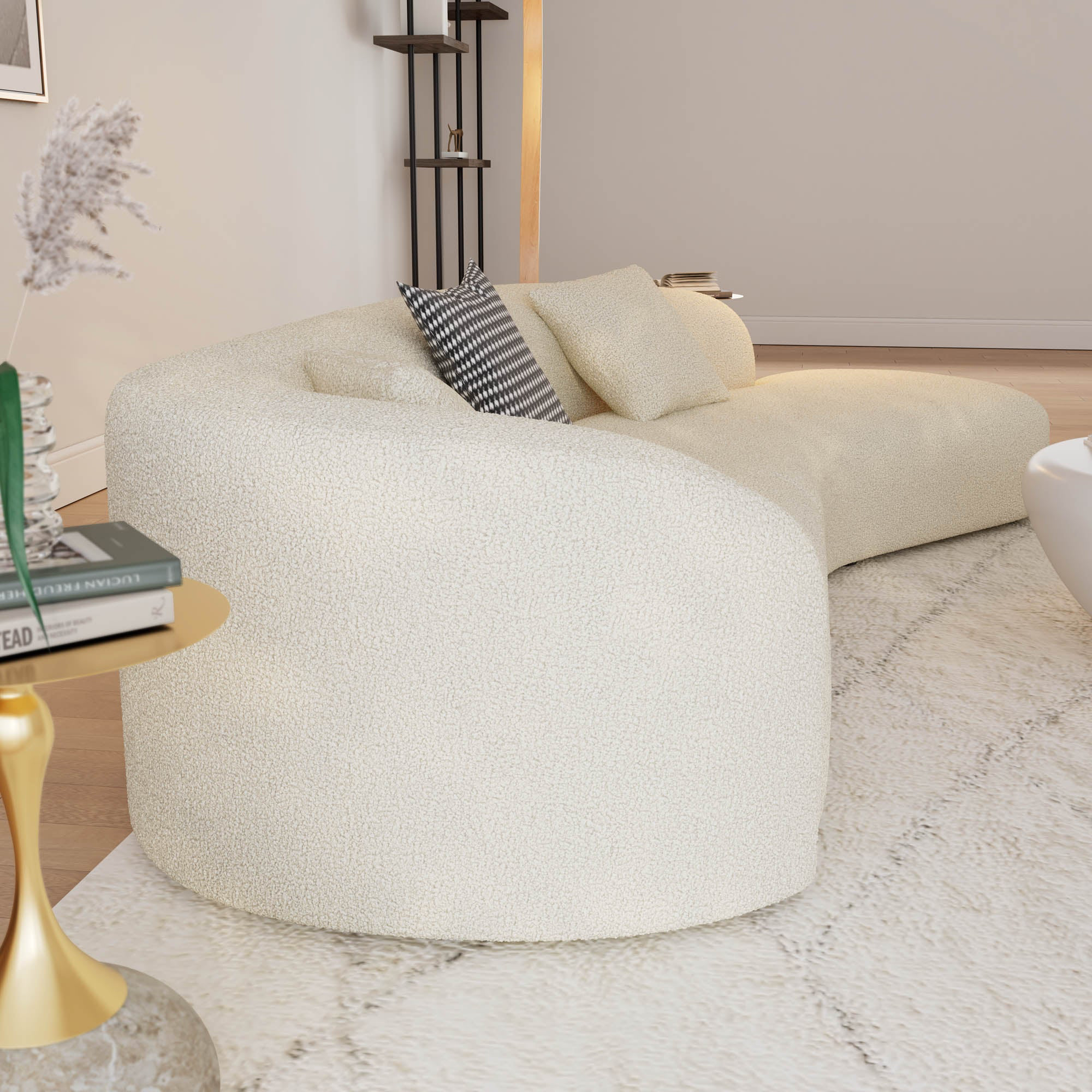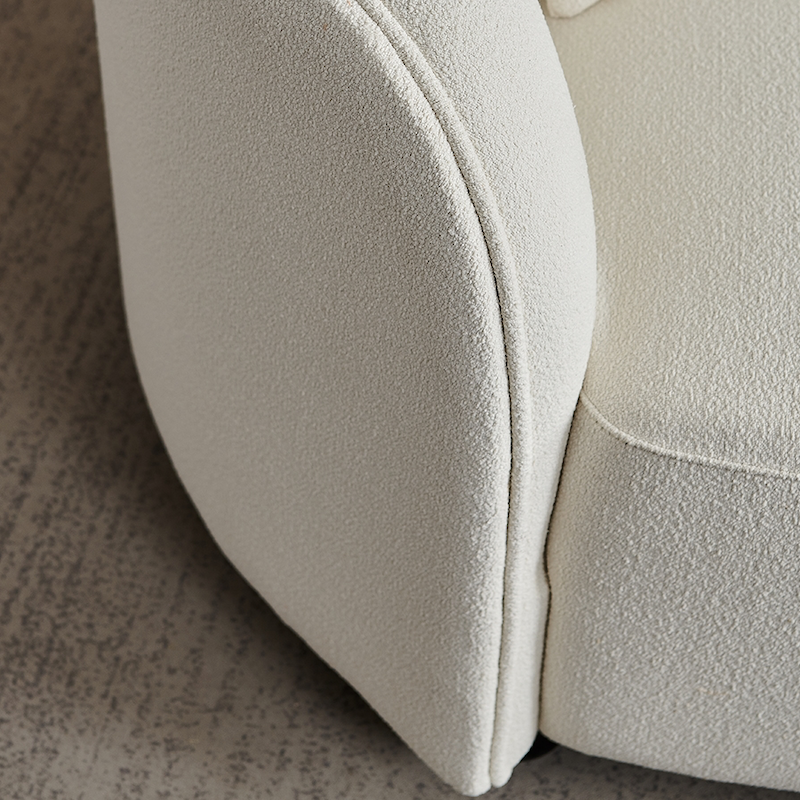 Embrace the tranquil charm of the Lune Sofa, inspired by the serene beauty of the moon. This piece features a minimalist design that exudes sophistication and simplicity. Upholstered in premium boucle fabric, it promises a warm and comfortable seating experience. Bring a touch of lunar tranquility to your home with this stylish and comfortable sofa.