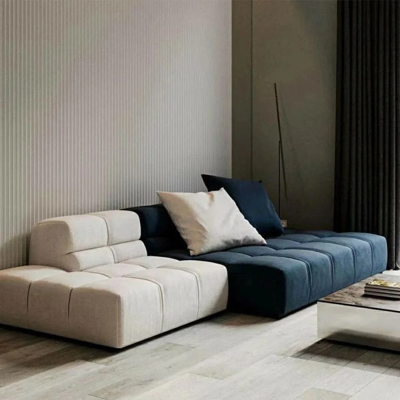 Transform your living space with the Luxe Puff sofa, a modular masterpiece inspired by the fluffy, cloud-like texture of marshmallows. Its design emphasizes both elegance and comfort, providing a luxurious seating option. Constructed from solid Russian birch, it offers high-density foam padding and elegant fabric upholstery.