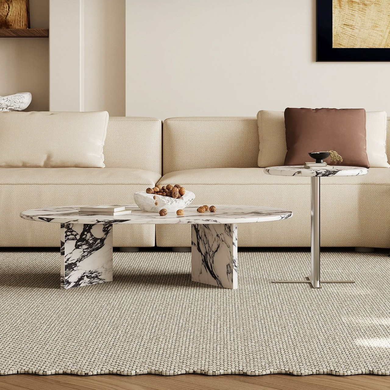 The Mito Marble Side Table mesmerizes with its intricate patterns and sleek silhouette. Crafted from premium marble, it harmonizes modern aesthetics with the timeless allure of natural stone.