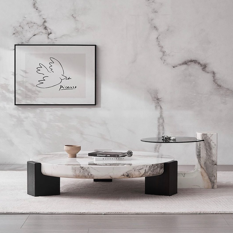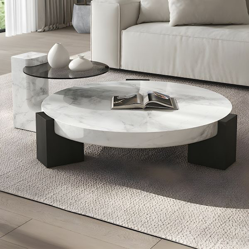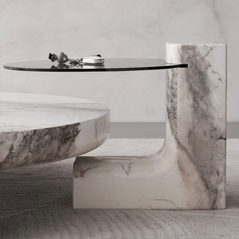 Experience the allure of the Novi coffee table Set, crafted with solid wood legs and a natural marble top finished in snowflake white resin. Its exquisite craftsmanship and attention to detail highlight its distinctive personality and luxurious appeal. The marble’s organic patterns and glossy finish create a striking visual contrast against the warmth of the wood legs. Designed for connoisseurs of fine furniture, the Novi coffee table blends artistry with functionality to enhance any living space.