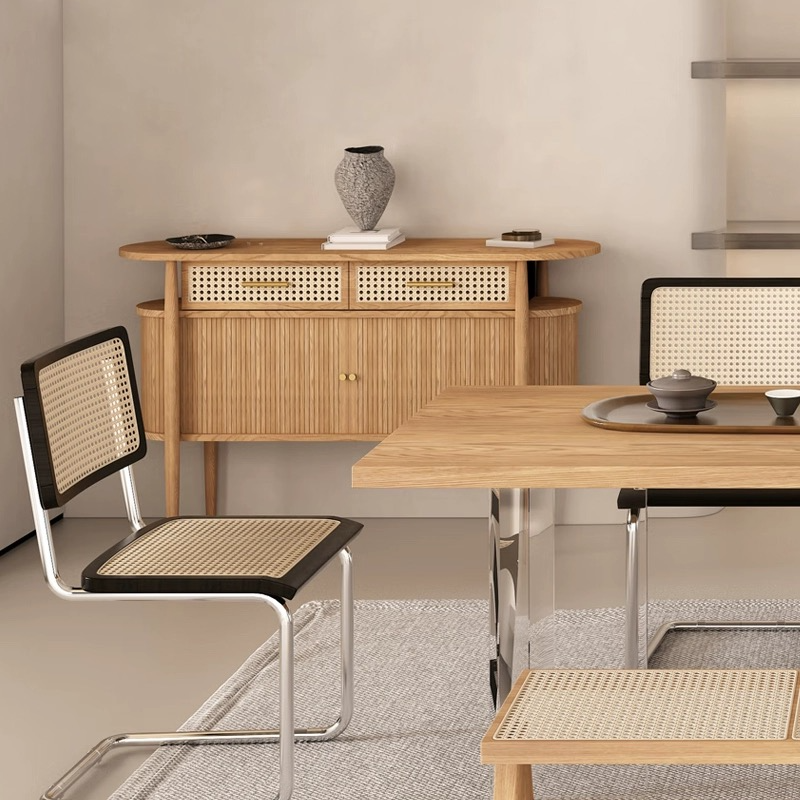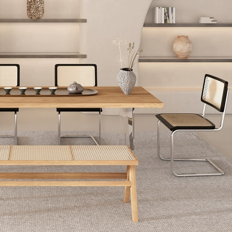 Enhance your dining experience with the Oita Dining Chair, featuring a refined Ash Wood frame, elegant rattan support, and sleek stainless steel legs. This chair embodies the simplicity and elegance of Japanese design, combining natural materials with modern elements. The rattan support provides comfort and a touch of traditional craftsmanship while the stainless steel legs offer a contemporary contrast, ensuring durability and stability. Perfect for both modern and traditional interiors, this versatile dining chair brings a harmonious blend of style and function to your dining area.