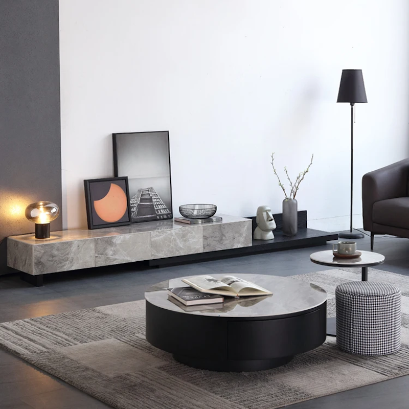 Porto Extendable Entertainment Unit – featuring a stunning snow-white stone inlay, embodies refined elegance for contemporary living spaces. The multilayer solid wood boasts a sleek, snow-white stone finish, paired with a matte red oak veneer, creating a harmonious blend of luxury and natural beauty. With three spacious drawers, this console is perfect for organizing and concealing your entertainment equipment. Inspired by the sophisticated aesthetics of modern homes, the Ador collection combines premium materials with exquisite craftsmanship.Extendable entertainment unit length can be expand from 200cm to 300cm.