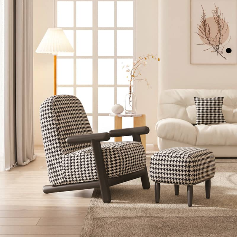 Inspired by the sleek lines of a sled, the Sled Occasional Chair combines classic and vintage aesthetics. Its Italian high-end design is evident in the minimalistic yet elegant form. Featuring metal or ash wood armrests and a solid wood frame, this chair offers both durability and style. The premium houndstooth cotton-linen upholstery adds a touch of sophistication to any space.