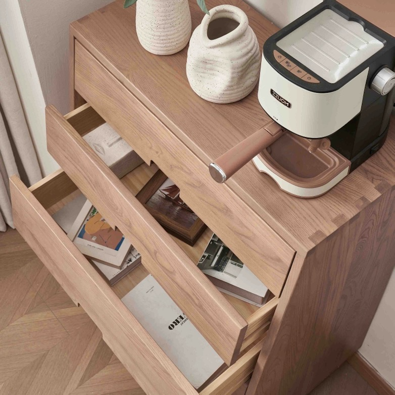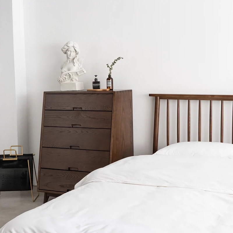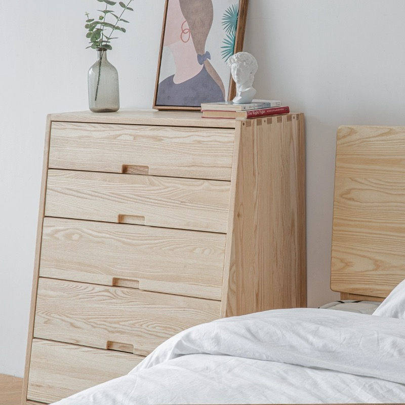Enhance your bedroom with the Suita Dresser, a perfect blend of simplicity and elegance. Crafted from high-quality wood, this dresser features clean lines and a minimalist design that embodies the essence of Japanese aesthetics. The natural wood finish showcases the rich grain, adding warmth and sophistication to your space. With ample drawers for organized storage and an understated form, this dresser seamlessly fits into both modern and traditional interiors.