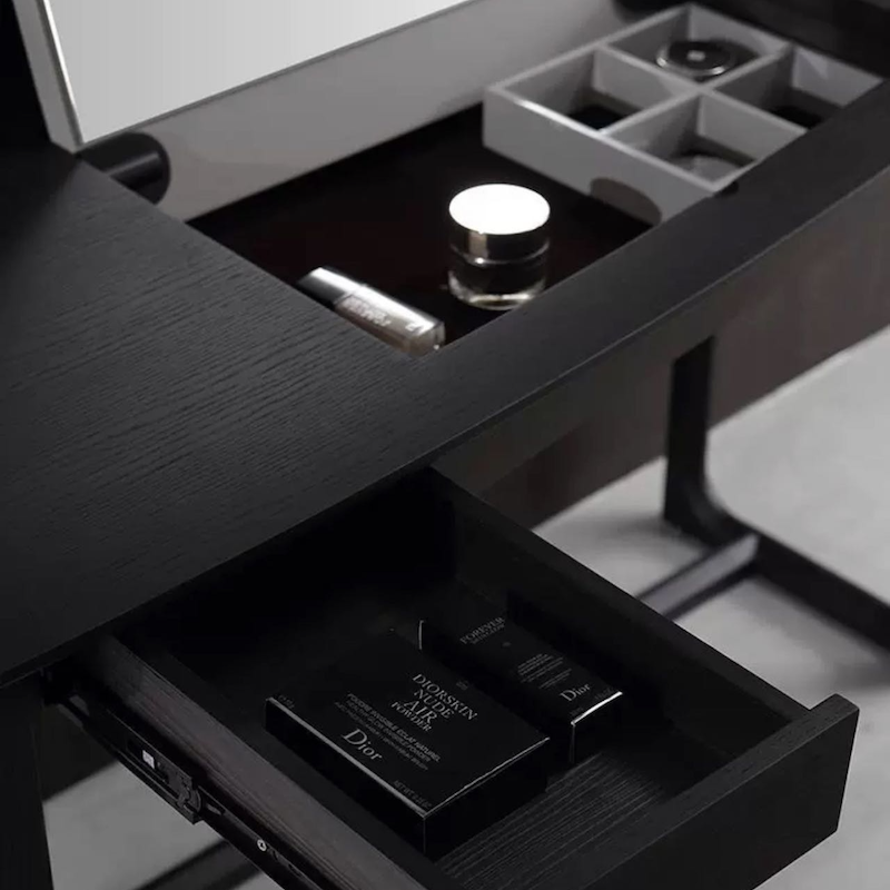 The Torino Dressing Table stands as a symbol of opulence and grandeur, featuring a sophisticated smoked finish. Its luxurious design and masterful craftsmanship make it a standout piece in any room. The refined details and elegant lines reflect an unparalleled sense of style. Enhance your workspace with this exquisite desk that embodies both beauty and functionality with a mirror.