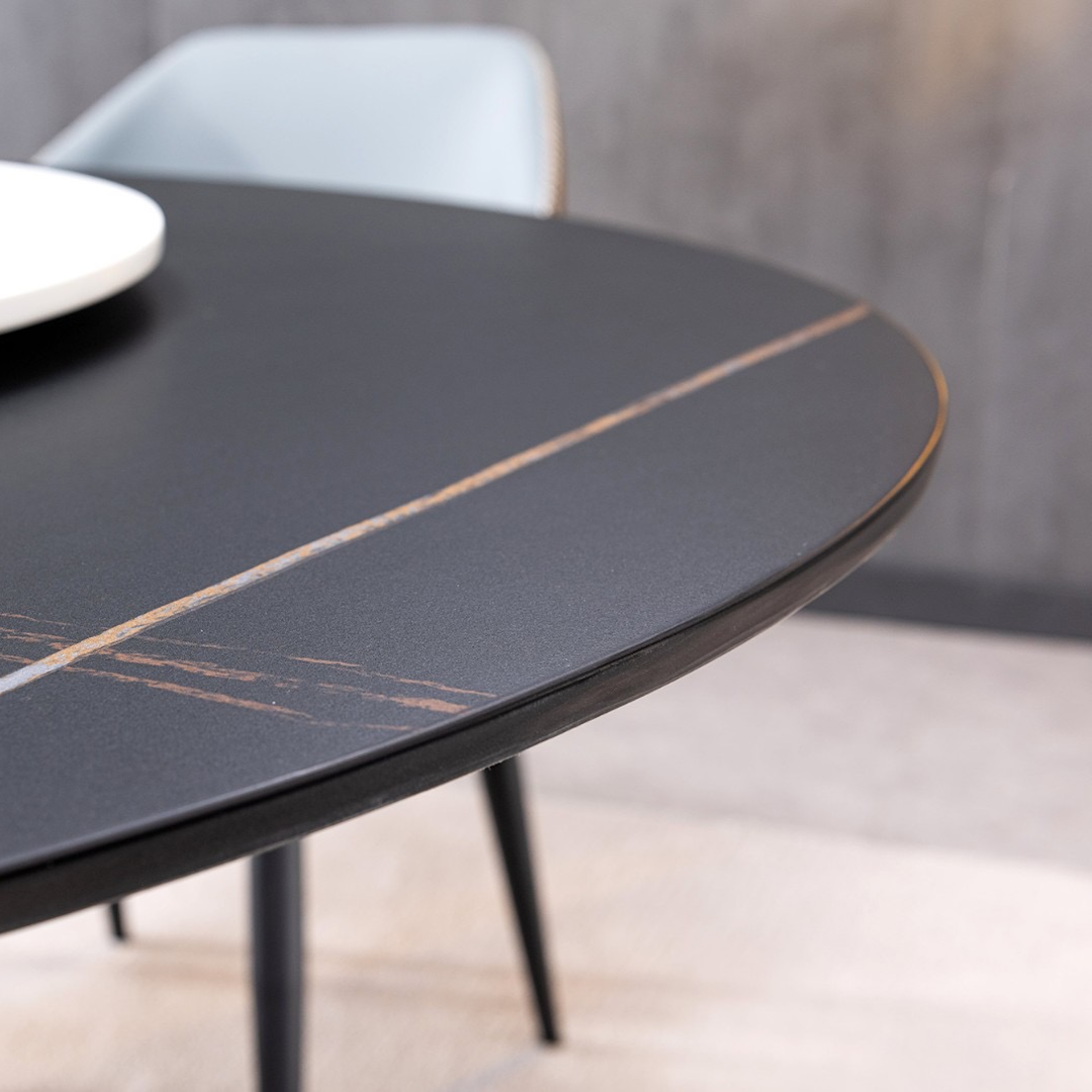 Introducing the Vigo Dining Table, a masterpiece that fuses cutting-edge design with unparalleled luxury. The sintered stone tabletop exudes opulence, seamlessly blending with the robust stainless steel base. Its intricate design reflects a bold, sophisticated aesthetic. Perfect for those who appreciate fine craftsmanship and distinctive style. The Vigo Dining Table is the epitome of modern elegance.