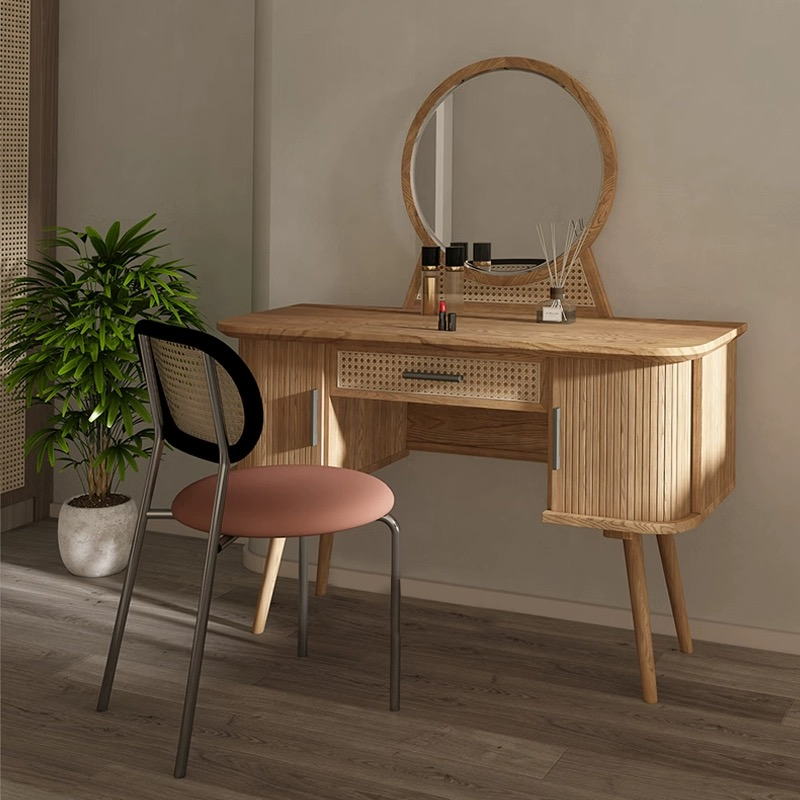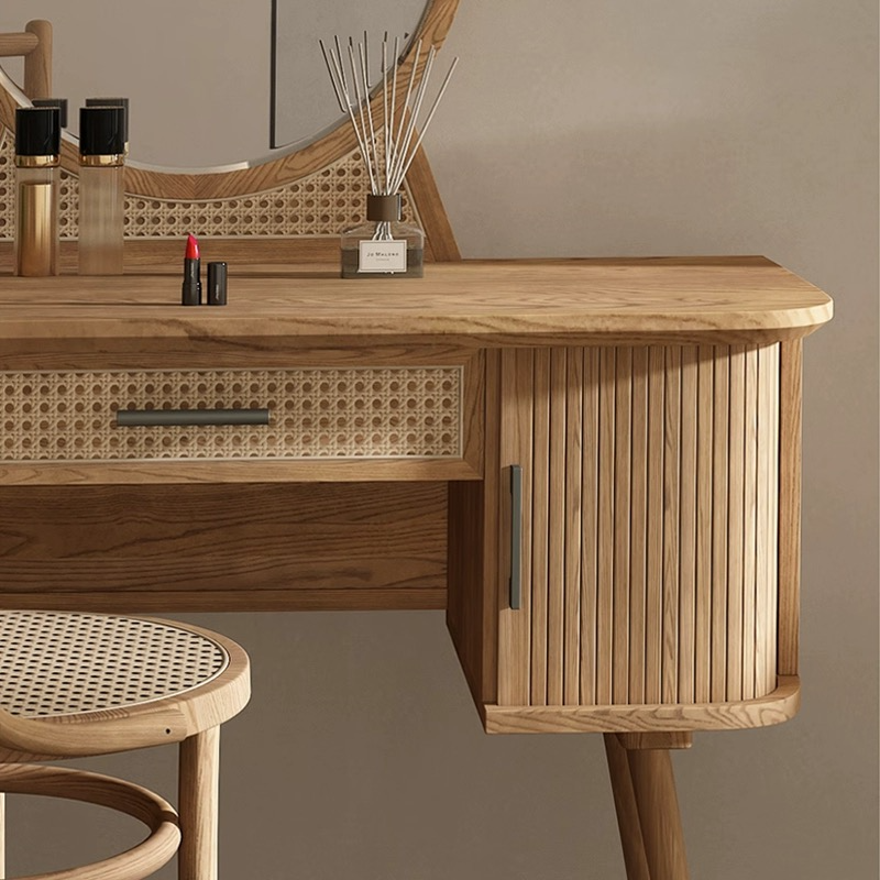 Elevate your daily routine with the Yao Dressing Table, a perfect blend of simplicity and elegance. Crafted from premium wood, this dressing table features clean lines and a minimalist design that embodies the serene beauty of Japanese aesthetics. The natural wood finish highlights the exquisite grain, adding warmth and sophistication to any bedroom or dressing area. With ample storage space for your essentials, this versatile piece combines style and functionality seamlessly.
