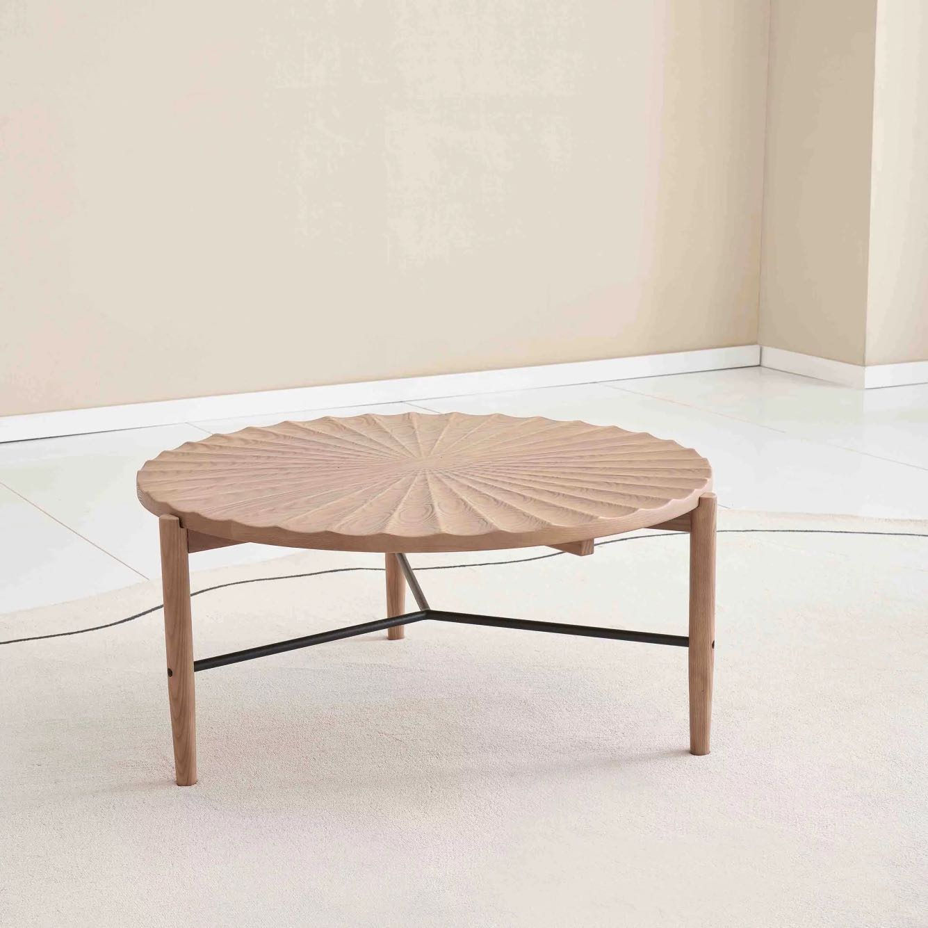Enhance your living space with the Yuta Coffee Table, embodying the essence of minimalism and elegance. Crafted from high-quality wood, this table features a smooth, round top and clean, simple lines that reflect Japanese design principles. The natural wood finish showcases the beautiful grain, adding warmth and serenity to your home. Its versatile design makes it a perfect fit for both modern and traditional interiors, providing a stylish centerpiece for any room.